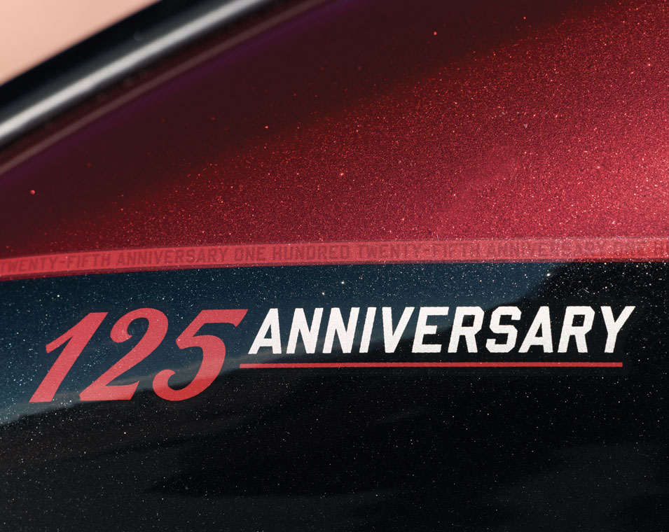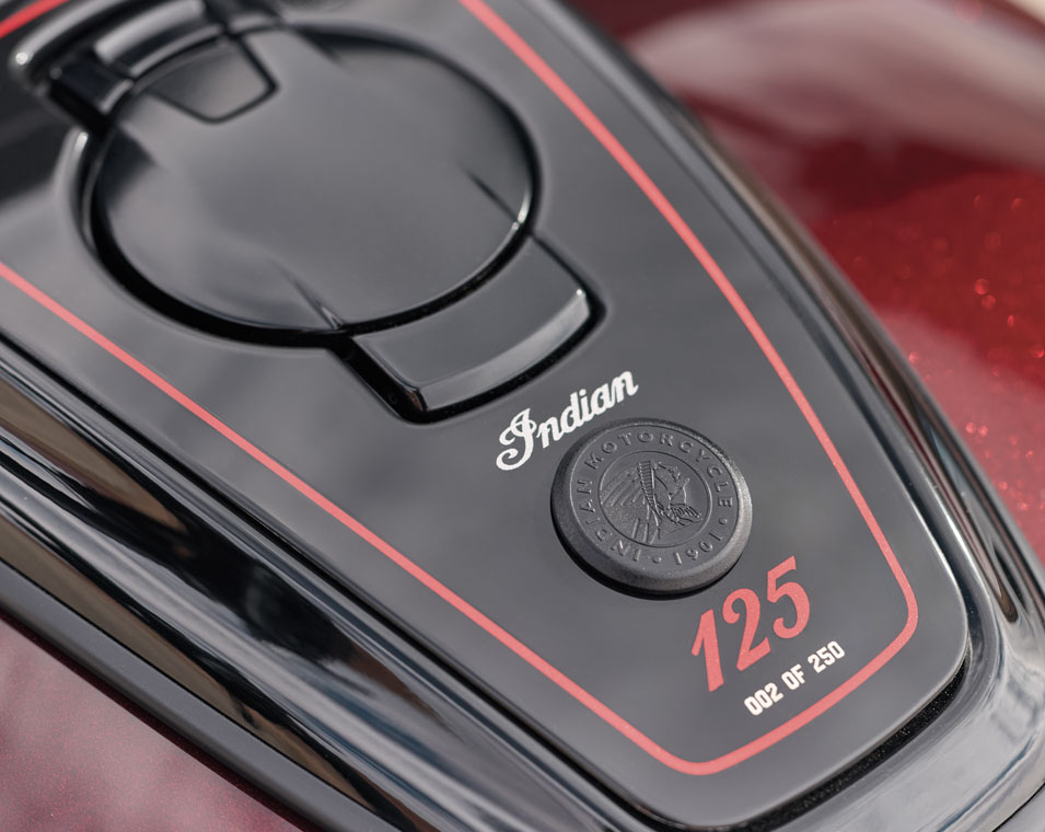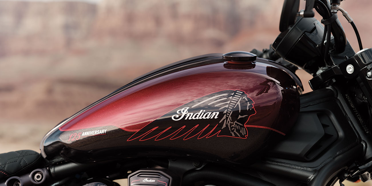 A Scout Bobber Edição 125.º Aniversário reduz a mota à sua expressão mais pura. A sua postura agressiva e o design bobber clássico são complementados por detalhes pintados à mão com grande precisão e emblemas comemorativos do 125.º aniversário.