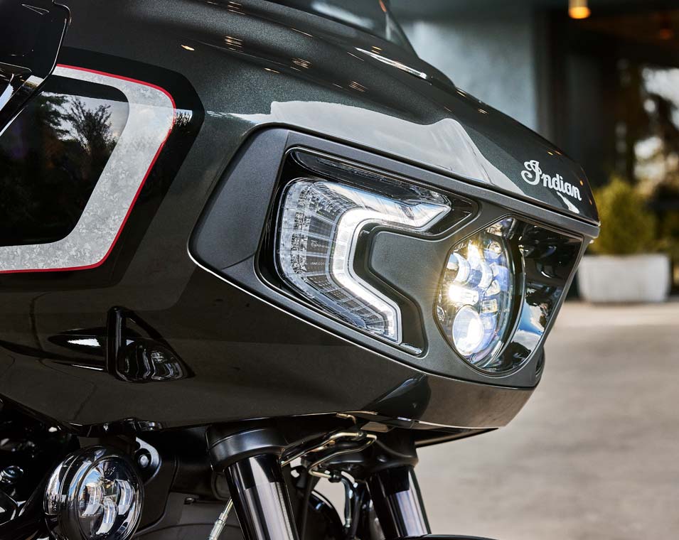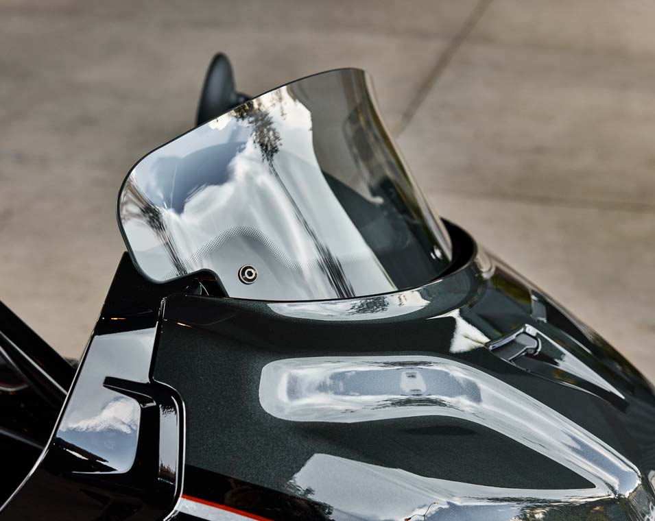 | Infoentretenimento | Ecrã tátil de 7 polegadas operado por RIDE COMMAND com relógio em tempo real; temperatura do ar ambiente; tópico; ecrã de informação áudio; mapa/navegação; estado do Bluetooth para telefone e auriculares; estado do veículo (pressão dos pneus, tensão, horas de funcionamento do motor, mudança de óleo); informações do veículo (velocidade, autonomia de combustível, RPM, velocidade de caixa engrenada); dados da viagem atual (distância, tempo de movimento, tempo de paragem, altitude, mudança de altitude); conta-quilómetros de viagem; seleção do modo de condução; luminosidade do ecrã; mostrador de códigos de erro do veículo; integração de Apple CarPlay. |