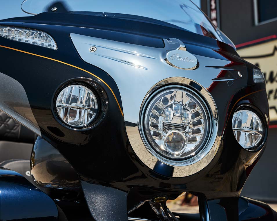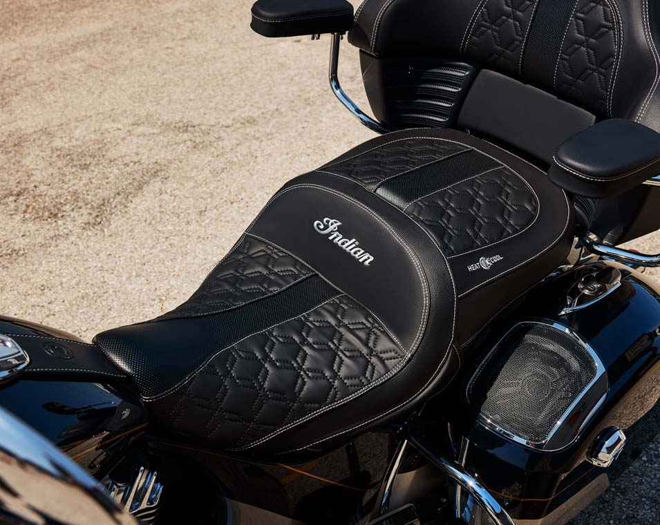 | Equipamento de Série | Ecrã de 7” operado por RIDE COMMAND com navegação e integração de Apple CarPlay®; para-brisas elétrico; luzes auxiliares; barras de proteção; banco s de vinil (controlos de aquecimento separados do condutor/passageiro); punhos aquecidos; pousa-pés do passageiro ajustáveis; 137 litros de capacidade de armazenamento; monitorização da pressão dos pneus; fecho por comando remoto das malas rígidas e mala traseira; modos de condução selecionáveis; desativação do cilindro traseiro; ABS; Cruise Control; ignição sem chave; sistema de áudio de 100 W com AM/FM, Bluetooth®, USB, entrada para smartphone e banda de emissão meteorológica; tomada de carga de 12V |