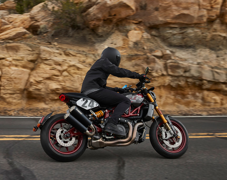 Seja a baixa ou alta velocidade, o poderoso motor da FTR acentua o estilo imponente deste modelo. Não te esqueças de aumentar o volume!