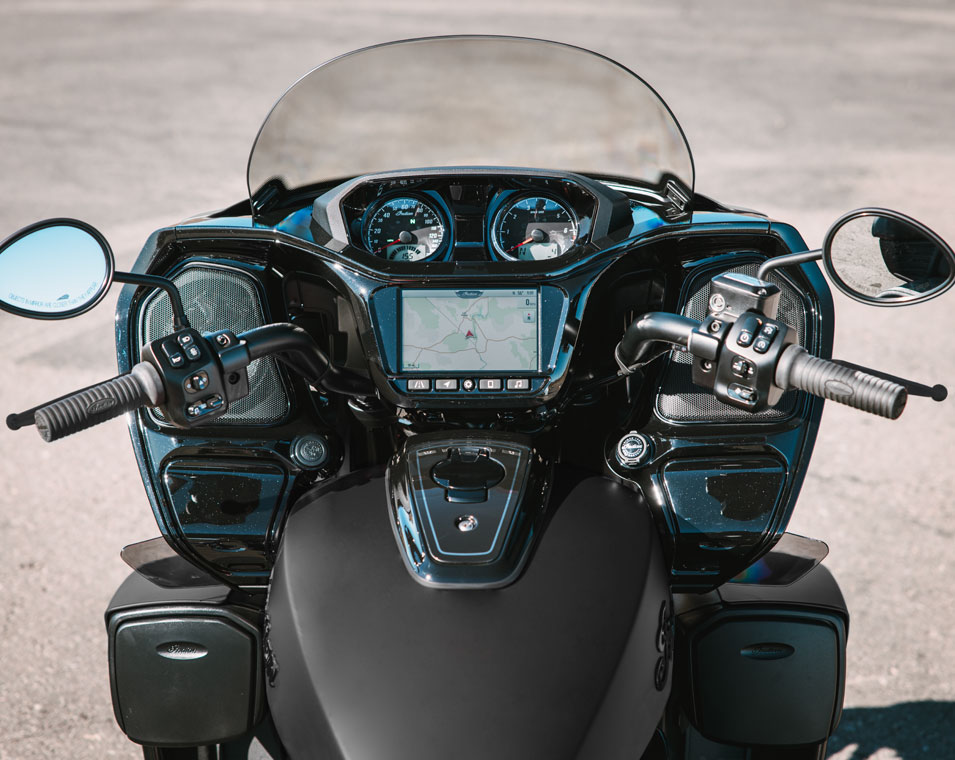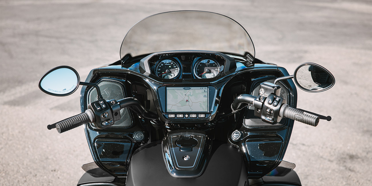 | Ride Command® | Ecrã de 7" instalado de fábrica com navegação GPS, Apple CarPlay®, conectividade Bluetooth®, instrumentos configuráveis, estatísticas de condução e muito mais |
